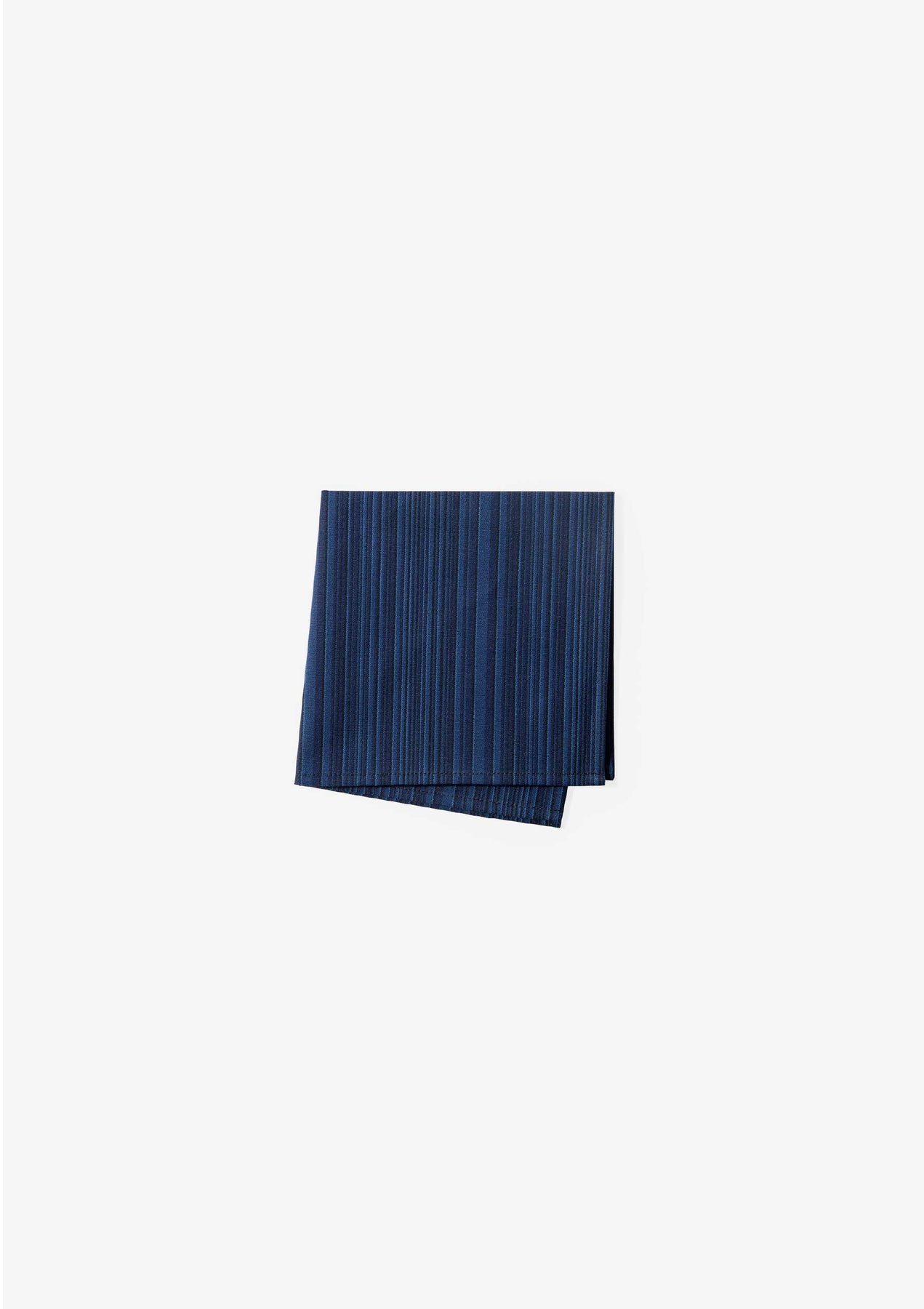 スリーピークス折りした藍百筋の藍色のポケットチーフ