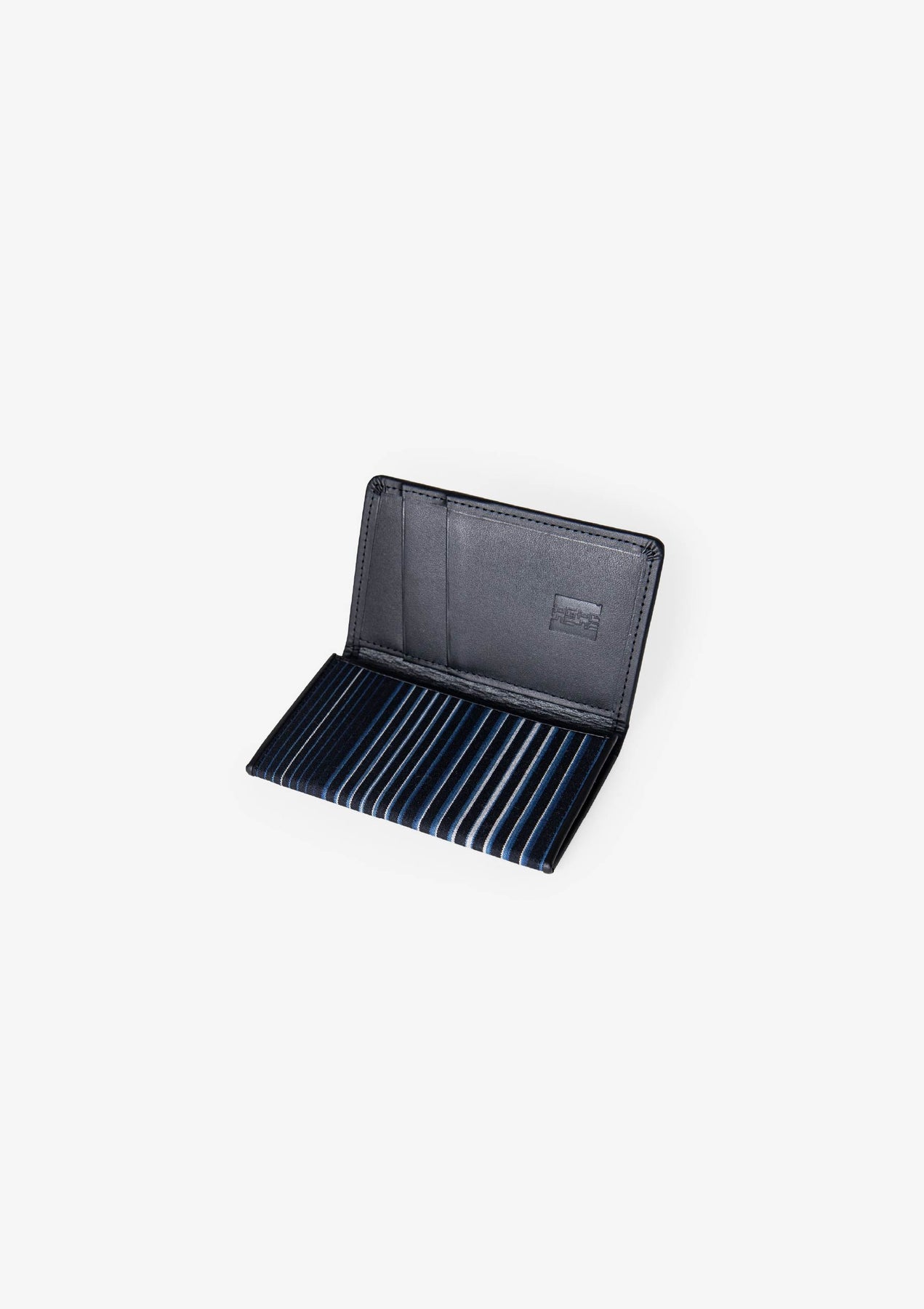 藍輪舞の藍色のストライプの名刺入れの開いた様子